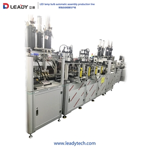 This automatic production line is developed for the lamp bulb in LED industry.?It adopt to?the segmented linear structure. The front part and back end of the line consists of automatic elevator collocation transmission which make up a chain ring linear vehicle lanes. The middle part uses sophisticated online rotary disk devices, which effectively reduces the footprint and space. Helped by artificial auxiliary implement to realize the high-efficiency semi-automatic production.