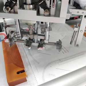 The main automation processes include the coil material feeding, folding ultrasonic welding, nose bridge feeding, ultrasonic welding ear bands, die cutting, folding forming, ultrasonic welding and die cutting etc.